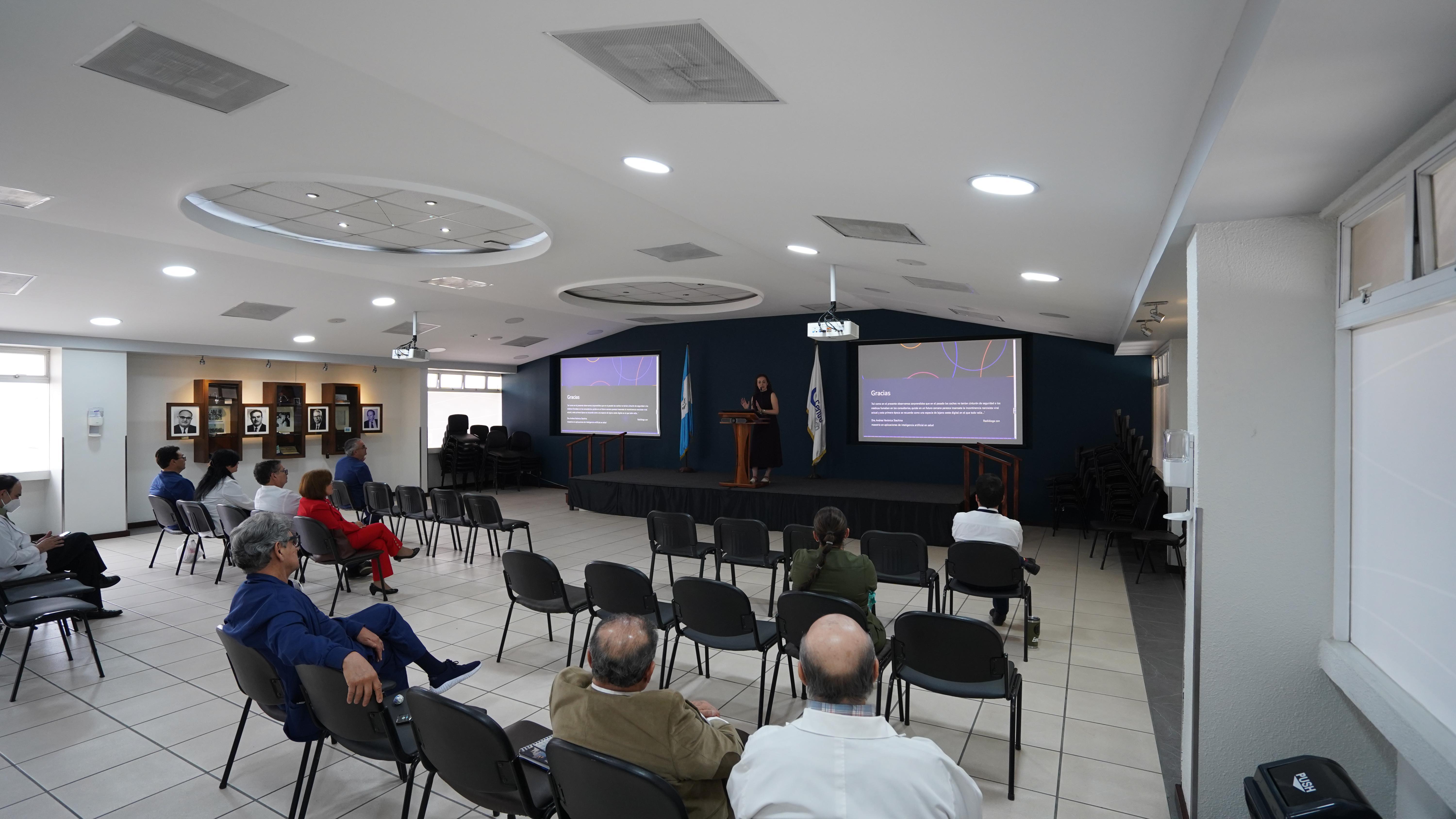 El jueves 24 de abril se llevó a cabo la conferencia científica organizada por el Comité de Educación Médica Continua, en el cual la Dra. Laura Reyna, Médico Oftalmólogo, especialista en Retina Médica y Oftalmo-Pediatría, con interés y experiencia en la innovación en los campos de estrabismo e inteligencia artificial. En la actualidad es consultora encargada del área de tamizaje y telemedicina para ambliopía y retina en "Euclid Telehealth división Ontario y Alberta"; participa en el área de Educación Médica Continua de la Asociación Guatemalteca de Oftalmología. La Dra. Reyna impartió el tema “Inteligencia Artificial en Salud”, una charla que exploró cómo las nuevas tecnologías están transformando el diagnóstico, tratamiento y seguimiento de los pacientes en múltiples especialidades médicas. Desde plataformas que detectan infartos cerebrales en segundos, hasta sistemas que apoyan el diagnóstico de cáncer o monitorean embarazos en tiempo real, la inteligencia artificial (IA) ya es una herramienta aliada en la práctica clínica.